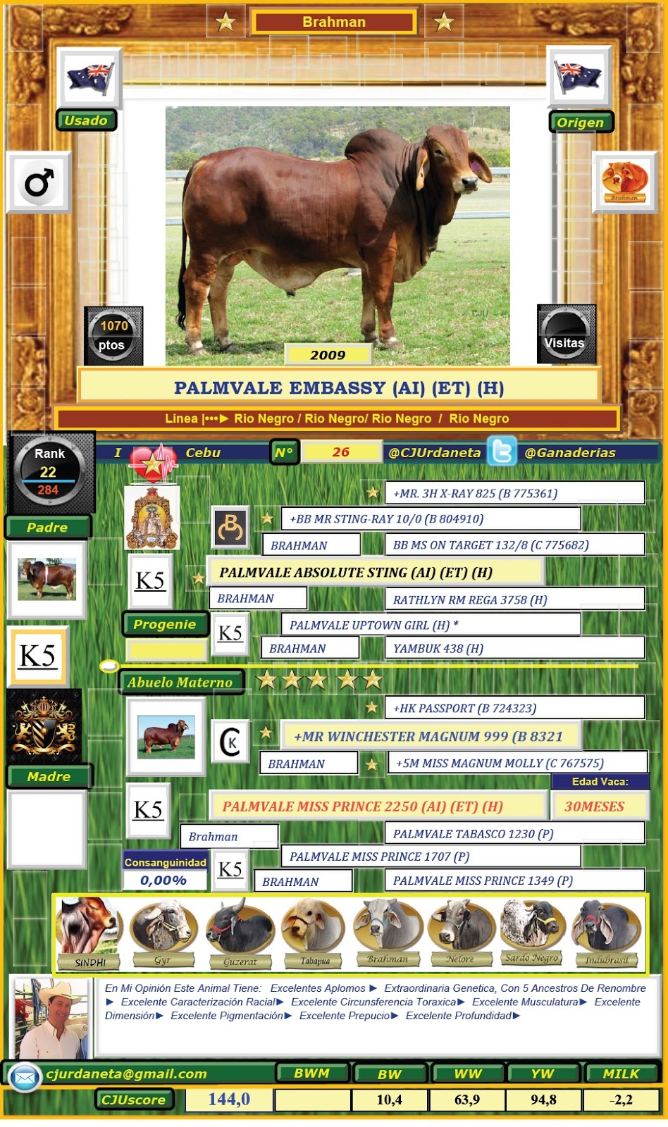 LINEA PATERNA 2 DEL ANIMAL: PALMVALE EMBASSY (AI) (ET) (H)